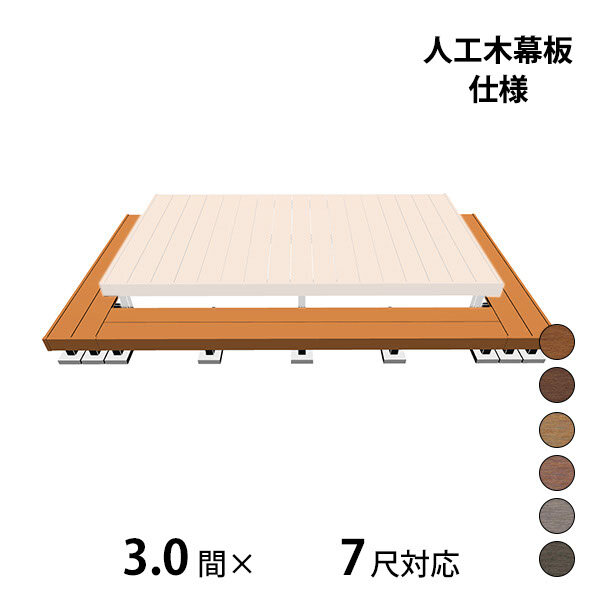 三協アルミ ヴィラウッド オプション 二段デッキ 間口+出幅(片側)対応 人工木幕板仕様 束連結納まり 3.0間×6尺 プレミアムタイプ