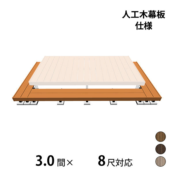 三協アルミ ヴィラウッド オプション 二段デッキ 間口+出幅(両側)対応 人工木幕板仕様 束連結納まり 3.0間×8尺 プレミアムタイプ