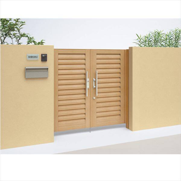 【法人様限定商品 個人宅・現場配送不可】四国化成 アレグリア門扉 TL5型 柱仕様 両開き 0914 木調タイプ ライトブラウン