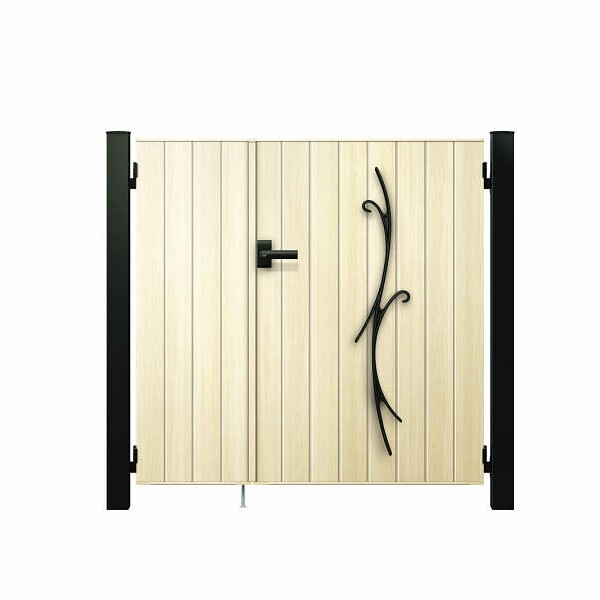 YKKAP ルシアス門扉FK1型 両開き 門柱仕様 08-14 内開き仕様 UME-V-FK1 木調カラー(門柱:アルミカラー)