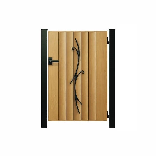 YKKAP ルシアス門扉FK1型 片開き 門柱仕様 08-14 内開き仕様 UME-V-FK1 木調カラー(門柱:アルミカラー)