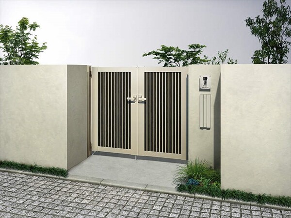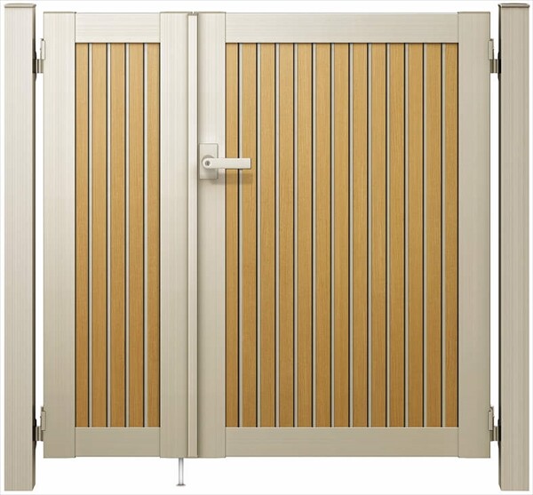 YKKAP ルシアス門扉FK1型 両開き 門柱仕様 10-12 内開き仕様 UME-V-FK1 木調カラー(門柱:アルミカラー)