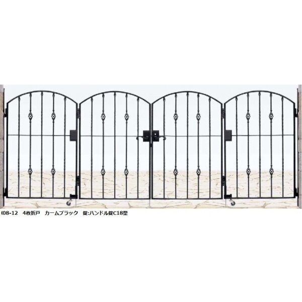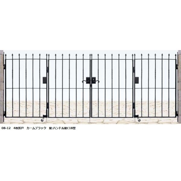 YKKAP シャローネシリーズ トラディシオン門扉7型 07-12 門柱・4枚折戸セット カームブラック