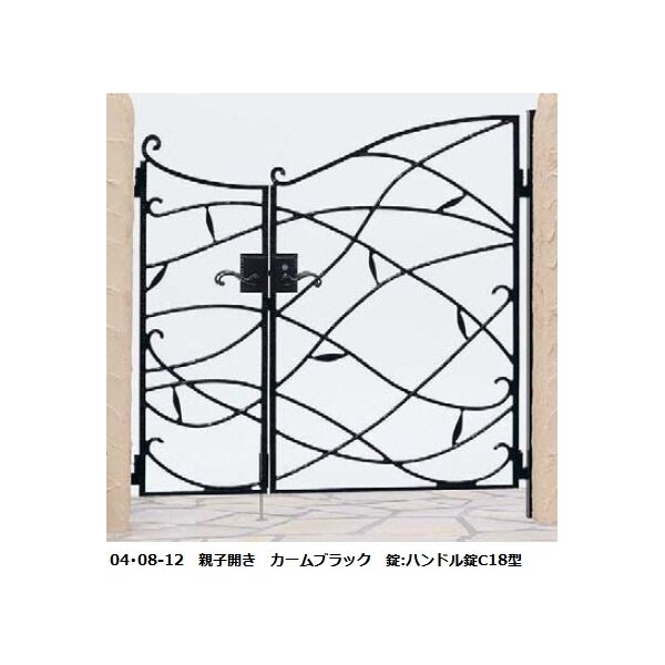 YKKAP シャローネシリーズ トラディシオン門扉1型 07-12 門柱・4枚折戸セット カームブラック