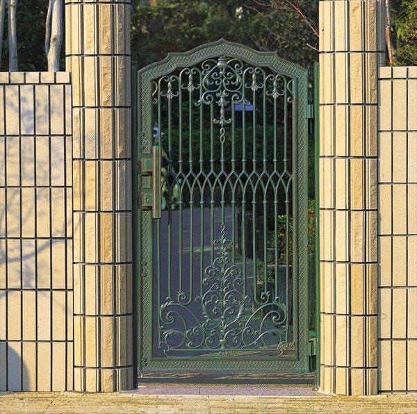 ロートアイアンをイメージしたYKKのアルミ製門扉です。