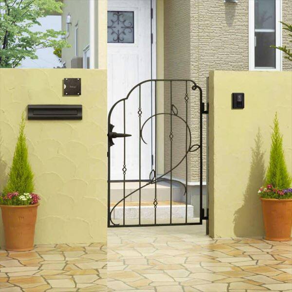 三協アルミ 門扉 プロヴァンス 4型 片開きセット 門柱タイプ 0612 アートブラック(KA)