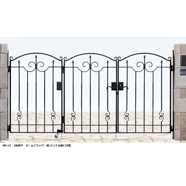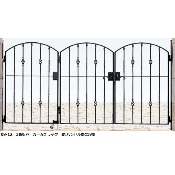 YKKAP シャローネシリーズ トラディシオン門扉1型 07-12 門柱・3枚折戸セット カームブラック