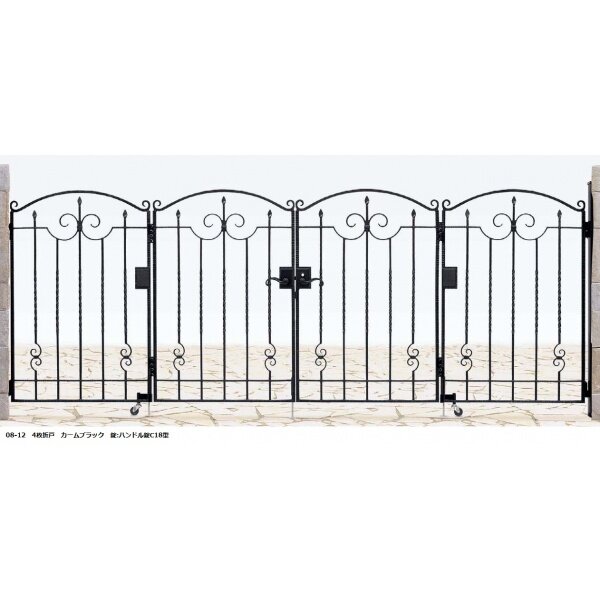 YKKAP シャローネシリーズ トラディシオン門扉5B型 08-12 門柱・4枚折戸セット カームブラック
