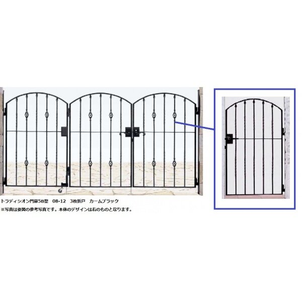 YKKAP シャローネシリーズ トラディシオン門扉5型 08-12 門柱・3枚折戸セット カームブラック