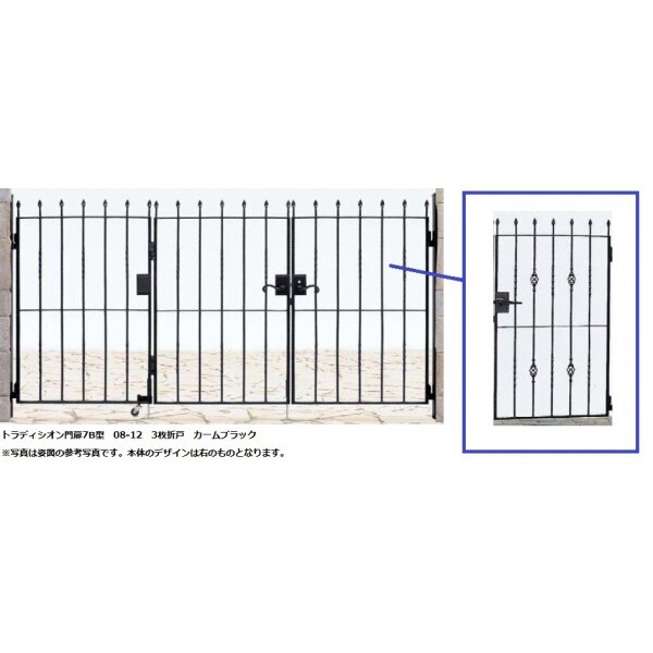YKKAP シャローネシリーズ トラディシオン門扉3型 07-12 門柱・3枚折戸セット カームブラック