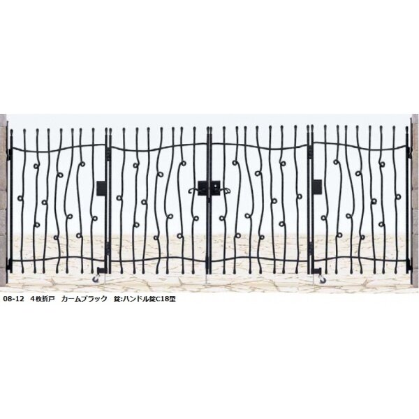 YKKAP シャローネシリーズ トラディシオン門扉9型 07-12 門柱・4枚折戸セット カームブラック