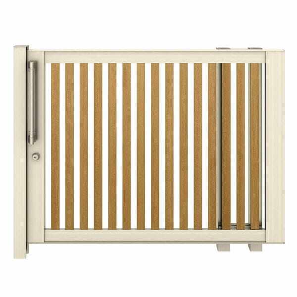 YKKAP ルシアススライド S02型 標準柱 16-14R 片引き 片面シリンダー錠セット 『たてストライプ ノンレール式引き戸 門扉』 木調カラー