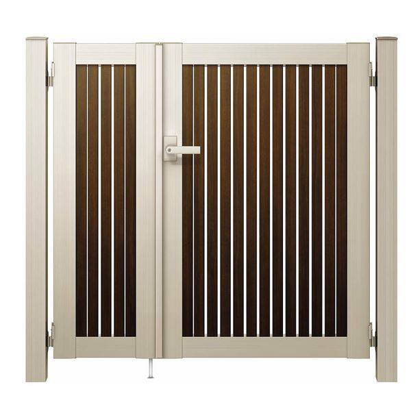 YKKAP エクスティアラ門扉シリーズ 2型 両開きセット 門柱仕様 09-14 木調カラー