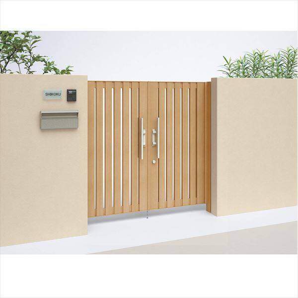 【法人様限定商品 個人宅・現場配送不可】四国化成 アレグリア門扉 TL2型 柱仕様 両開き 1014 木調タイプ ライトブラウン