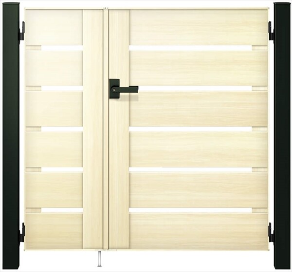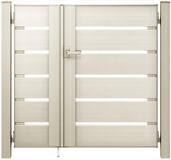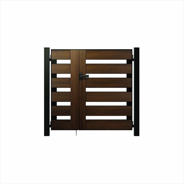 YKKAP ルシアス門扉YS4型 両開き 門柱仕様 07-12 内開き仕様 UME-V-YS4 木調カラー(門柱:アルミカラー)