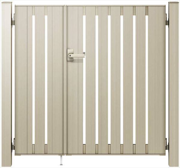 YKKAP ルシアス門扉TS4型 両開き 門柱仕様 07-14 内開き仕様 UME-V-TS4 木調カラー(門柱:アルミカラー)