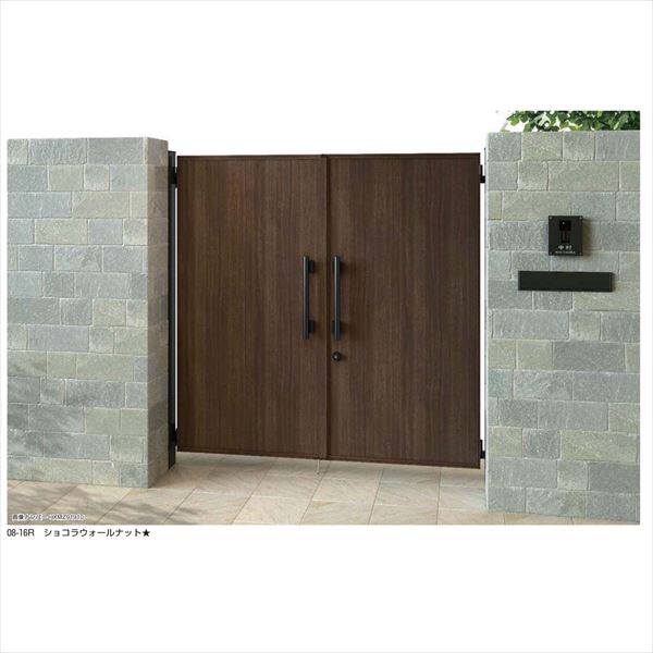 YKKAP エクスティアラ門扉シリーズ 1型 両開きセット 門柱仕様 08-14 木調カラー