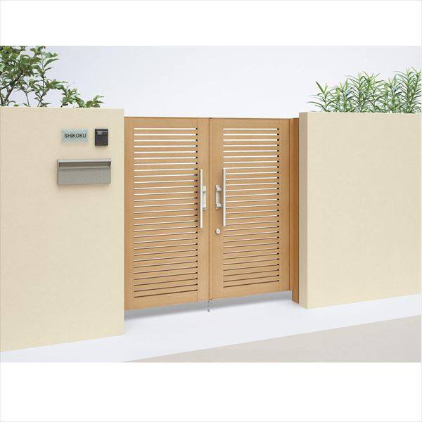【法人様限定商品 個人宅・現場配送不可】四国化成 アレグリア門扉 TL4型 柱仕様 両開き 1018 木調タイプ ライトブラウン