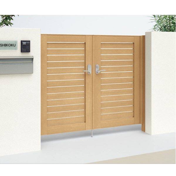 【法人様限定商品 個人宅・現場配送不可】四国化成 アレグリア門扉 1型 柱仕様 両開き 0714 木調タイプ ライトブラウン