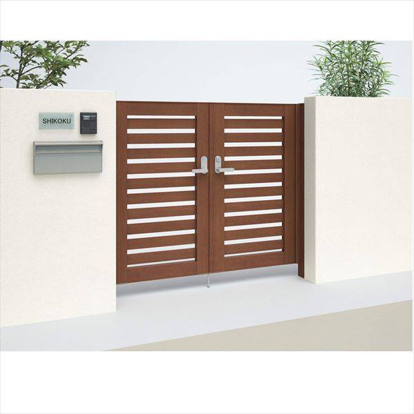 【法人様限定商品 個人宅・現場配送不可】四国化成 アレグリア門扉 TL2型 柱仕様 両開き 1014 木調タイプ マロンブラウン