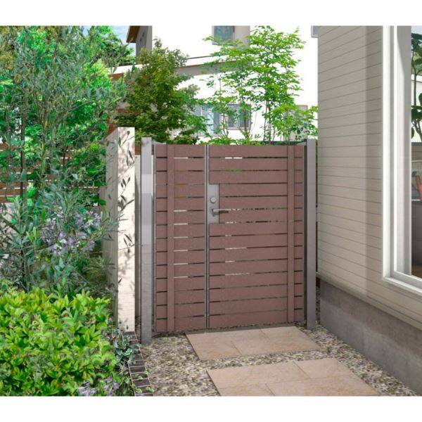 タカショー 門扉 ユニットプラス モクプラボードリアル90幅 片開き W1100×H1200 レバーハンドル錠