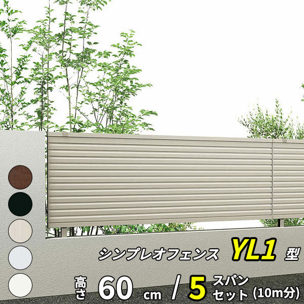 【13F型の後継品】 YKK YKKAP 完全目隠しフェンス シンプレオフェンス YL1型 5スパンセット 距離 10m × 高さ 60cm
