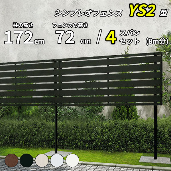 【SY1F型の後継品】 YKK YKKAP 目隠しフェンス シンプレオフェンス YS2型 4スパンセット 距離 8m × 高さ 172cm フェンス上段72cmのみ