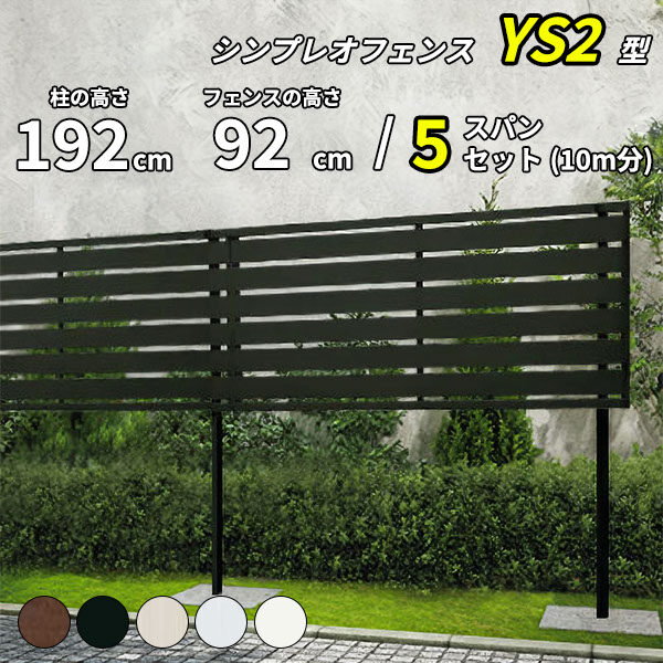【SY1F型の後継品】 YKK YKKAP 目隠しフェンス シンプレオフェンス YS2型 5スパンセット 距離 10m × 高さ 192cm フェンス上段92cmのみ