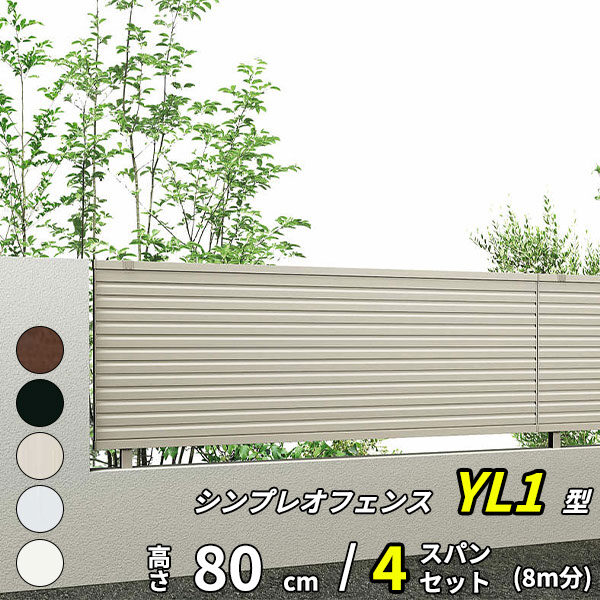 【13F型の後継品】 YKK YKKAP 完全目隠しフェンス シンプレオフェンス YL1型 4スパンセット 距離 8m × 高さ 80cm