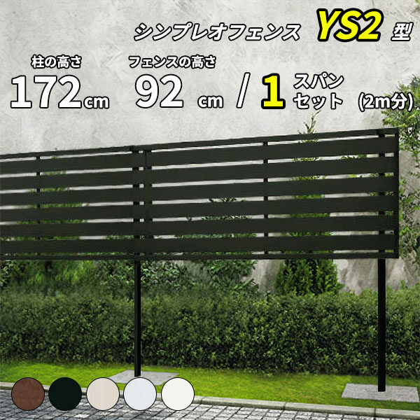 【SY1F型の後継品】 YKK YKKAP 目隠しフェンス シンプレオフェンス YS2型 1スパンセット 距離 2m × 高さ 172cm フェンス上段92cmのみ