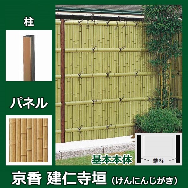 リクシル 竹垣フェンス 京香 建仁寺垣 ユニット型 間仕切りタイプ 片面仕様セット 基本本体 柱:ブロンズ 角柱 W-10 T-6 真竹