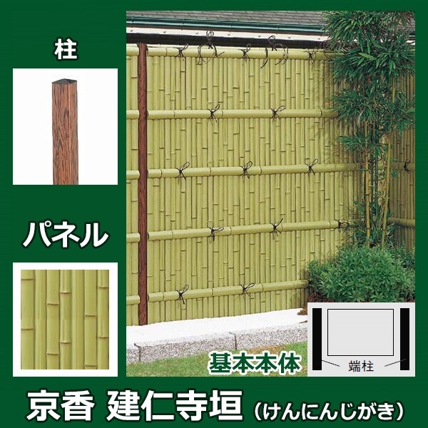 リクシル 竹垣フェンス 京香 建仁寺垣 ユニット型 間仕切りタイプ 片面仕様セット 基本本体 柱:木目調 角柱 W-10 T-10 しみじみ洗い青竹
