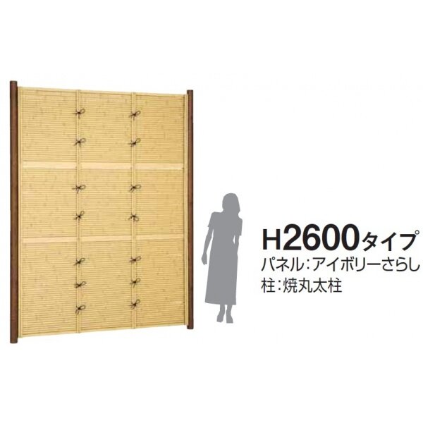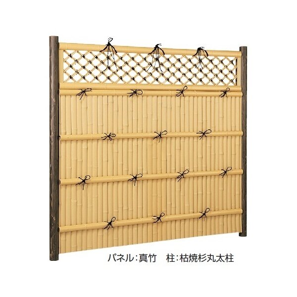 リクシル 竹垣フェンス 京香 細美垣 ユニット型 間仕切りタイプ 片面仕様セット 基本本体 柱:木目調 丸柱 W-10 T-26 真竹