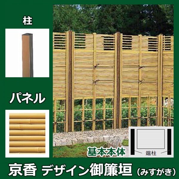 リクシル 竹垣フェンス 京香 御簾垣 ユニット型 間仕切りタイプ 両面仕様セット 基本本体 柱:ブロンズ 角柱 W-20 T-15 真竹