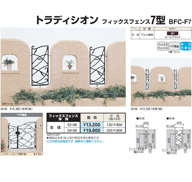 YKK シャローネシリーズ トラディシオン フィックスフェンス7型 02-08 本体 1枚 BFC-F7 『アルミフェンス 柵』