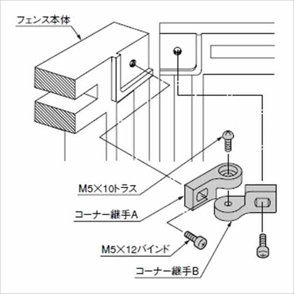 リクシル ラフィーネフェンス2型 間仕切りタイプ 取付部品C(コーナー用) T-12・14・18用