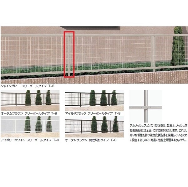 リクシル アルメッシュフェンス1型 フリーポールタイプ柱 T-8 『部品セットAが別途必要です』 『アルミフェンス 柵』