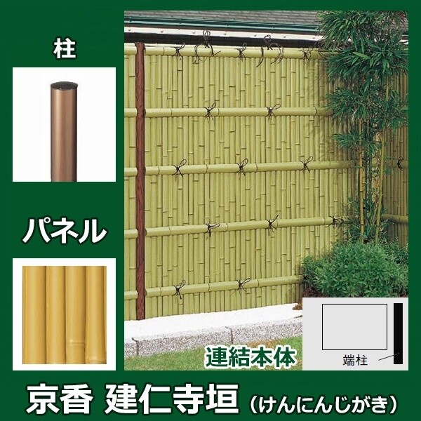 リクシル 竹垣フェンス 京香 建仁寺垣 ユニット型 間仕切りタイプ 両面仕様セット 連結本体 柱:木目調 丸柱 W-10 T-14 真竹