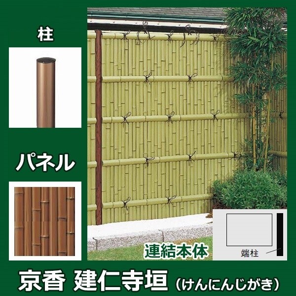 リクシル 竹垣フェンス 京香 建仁寺垣 ユニット型 間仕切りタイプ 両面仕様セット 連結本体 柱:ブロンズ 角柱 W-20 T-14 しみじみ真竹