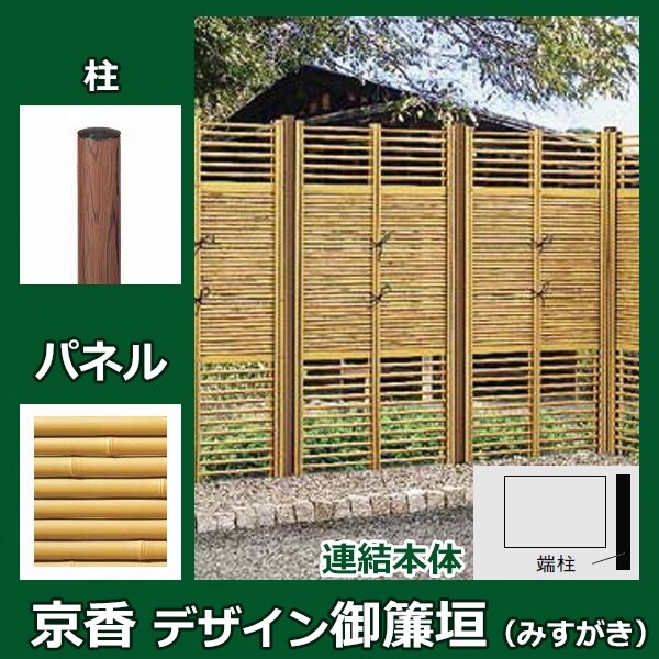 リクシル 竹垣フェンス 京香 大津垣 ユニット型 間仕切りタイプ 両面仕様セット 連結本体 柱:ブロンズ 角柱 W-20 T-12
