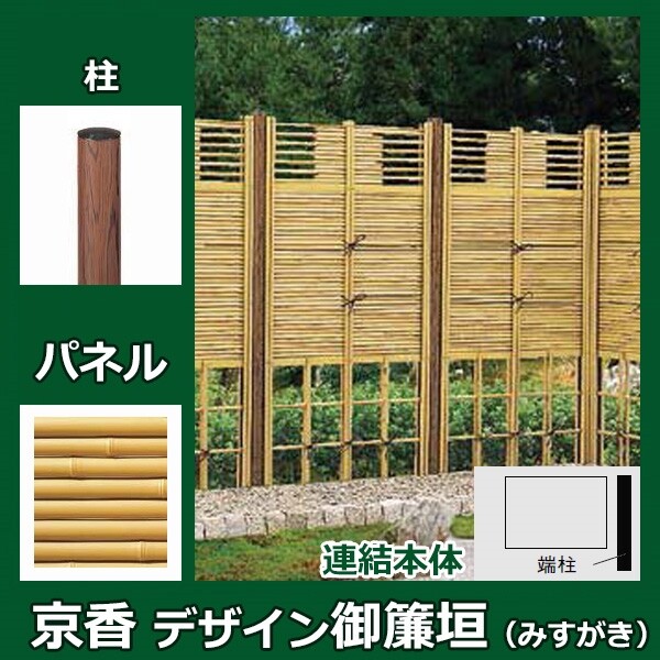 リクシル 竹垣フェンス 京香 御簾垣 ユニット型 間仕切りタイプ 両面仕様セット 連結本体 柱:ブロンズ 角柱 W-20 T-12 真竹