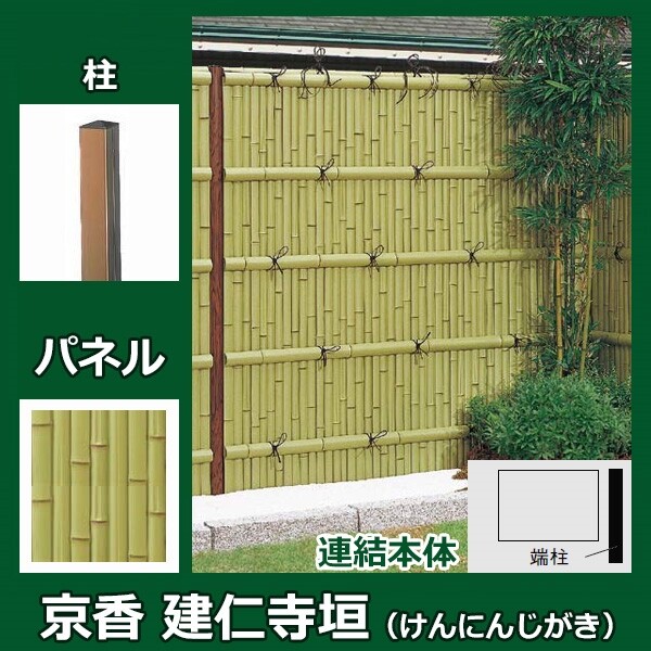 リクシル 竹垣フェンス 京香 建仁寺垣 ユニット型 間仕切りタイプ 片面仕様セット 連結本体 柱:ブロンズ 角柱 W-10 T-18 しみじみ洗い青竹