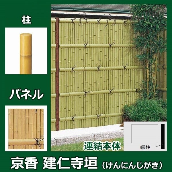 タカショー ユニバンブー 2型セット 60角柱(片面) 追加型(片柱) 『竹垣フェンス 柵』 真竹