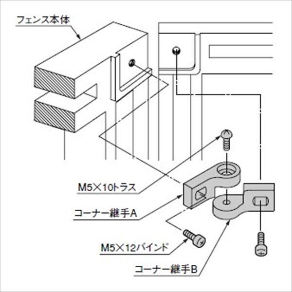リクシル ラフィーネフェンス4型 間仕切りタイプ 取付部品B(コーナー用) T-12用