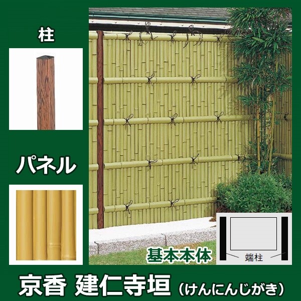 リクシル 竹垣フェンス 京香 建仁寺垣 ユニット型 間仕切りタイプ 片面仕様セット 基本本体 柱:ブロンズ 角柱 W-10 T-10 真竹