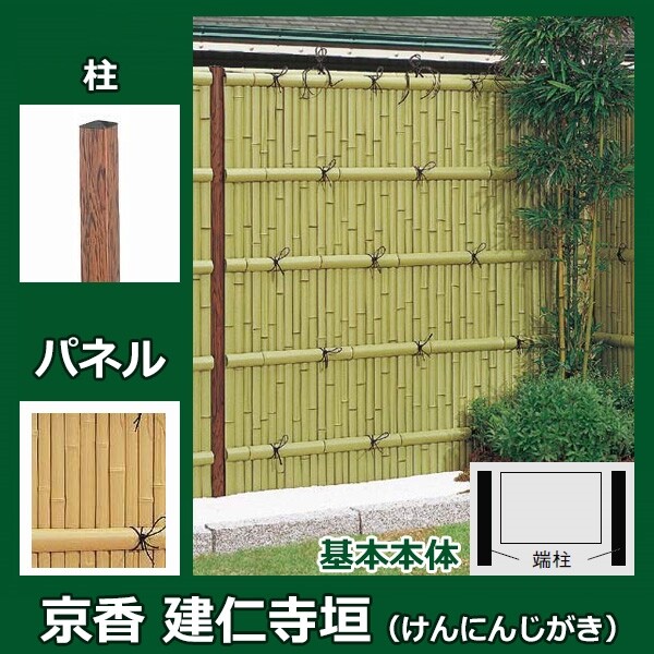 リクシル 竹垣フェンス 京香 建仁寺垣 ユニット型 間仕切りタイプ 両面仕様セット 基本本体 柱:ブロンズ 角柱 W-20 T-6 しみじみ洗い青竹