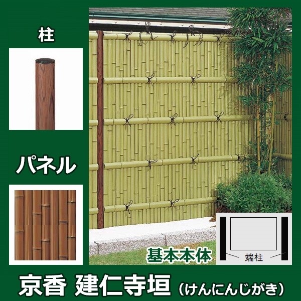 リクシル 竹垣フェンス 京香 建仁寺垣 ユニット型 間仕切りタイプ 片面仕様セット 基本本体 柱:ブロンズ 丸柱 W-20 T-30 真竹