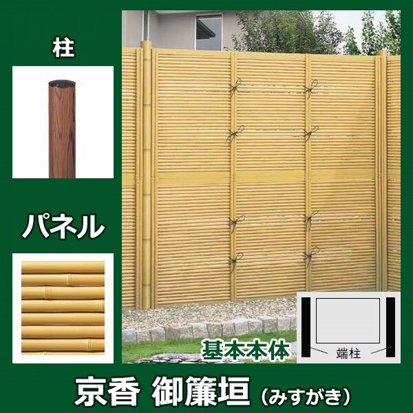 リクシル 竹垣フェンス 京香 御簾垣 ユニット型 間仕切りタイプ 両面仕様セット 基本本体 柱:ブロンズ 角柱 W-20 T-9 真竹