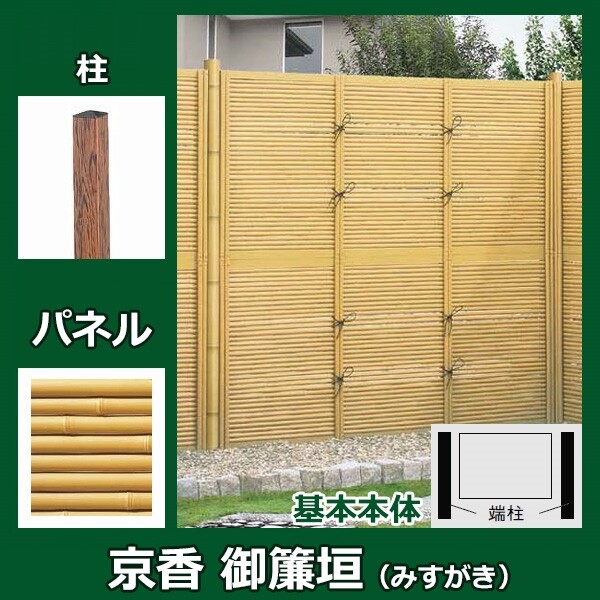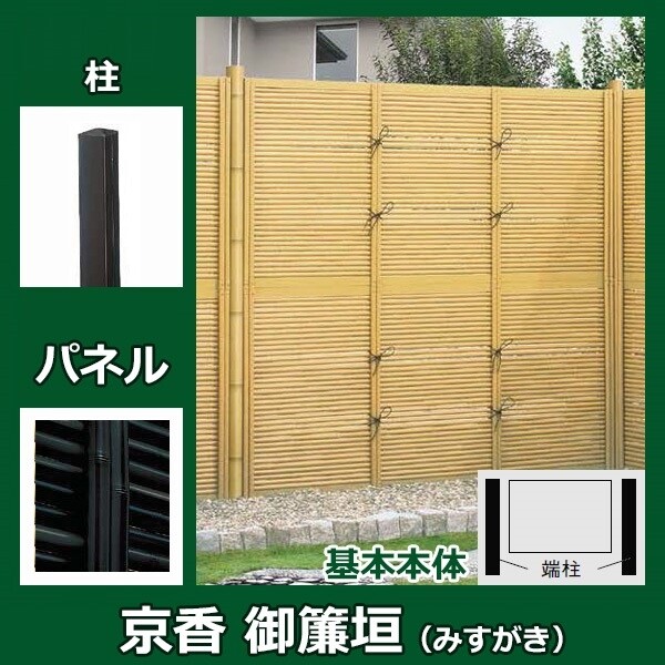 リクシル 竹垣フェンス 京香 御簾垣 ユニット型 間仕切りタイプ 両面仕様セット 基本本体 柱:ブロンズ 角柱 W-20 T-27 真竹