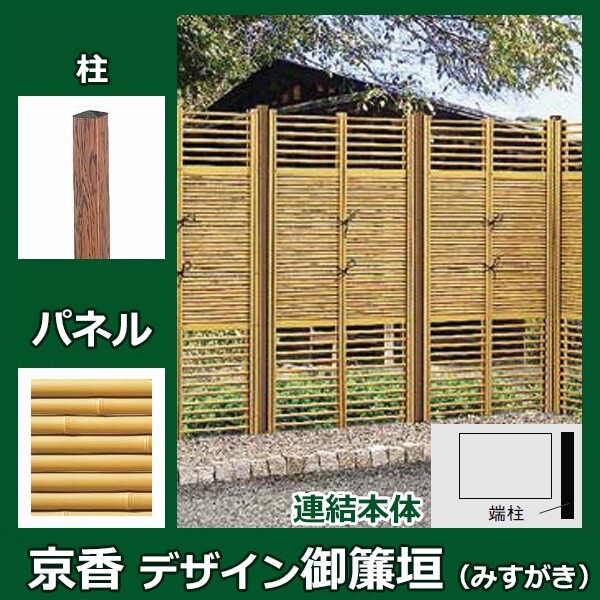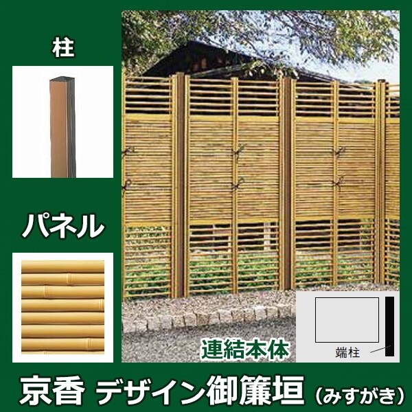 リクシル 竹垣フェンス 京香 デザイン御簾垣 3型 ユニット型 間仕切りタイプ 両面仕様セット 連結本体 柱:木調 角柱 W-10 T-15 真竹